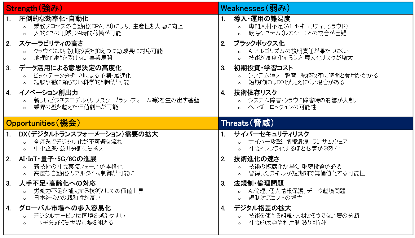 強み × 機会→ DX推進・新規事業創出・競争優位確立の最大チャンス
