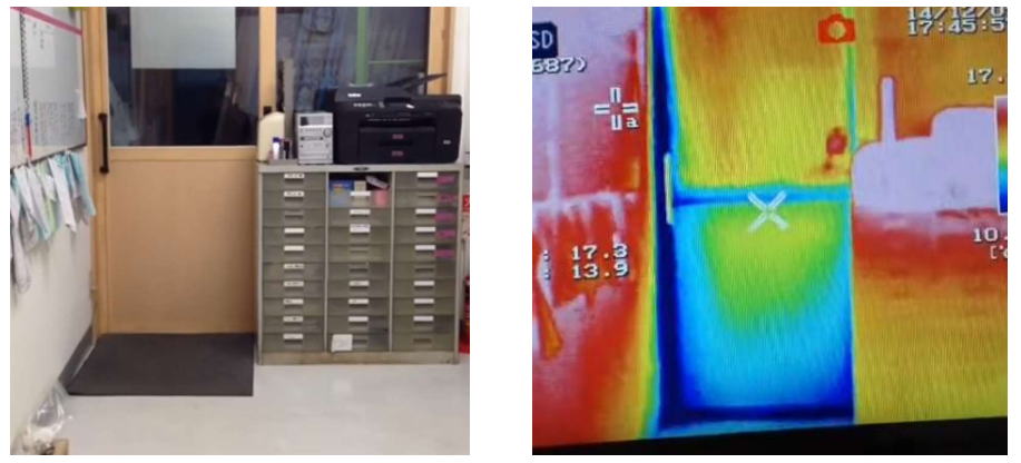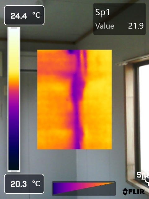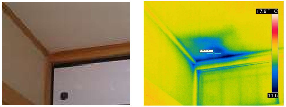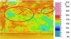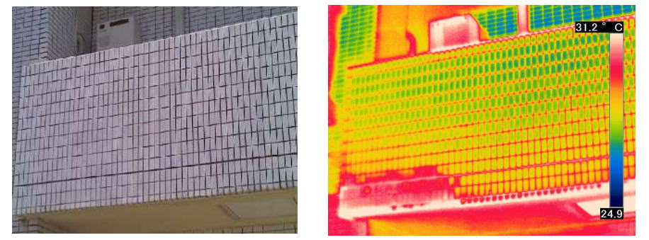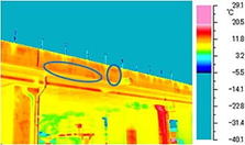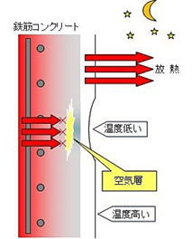 ■夜間には、昼間躯体に蓄積された熱が大気中に放熱される ■空気層がある部分は躯体からの放熱を遮断 ■健全部に比較して低温になる